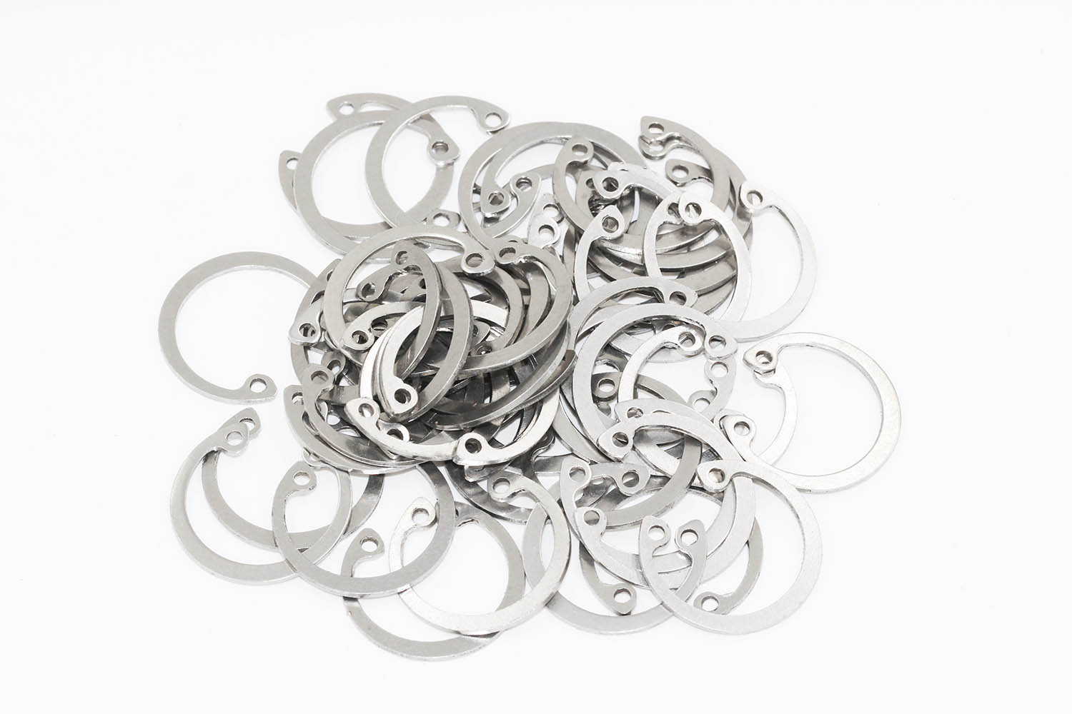 擋圈又稱卡簧,分為孔用擋圈和軸用擋圈,起軸向限位作用,可以防止其他零件軸向竄動。成型工藝多采用板材沖切,功能截面呈錐形,裝配后多為“線性接觸”部分大規(guī)格型號采用線材纏繞成型,沖切多余材料的工藝制成,截面呈規(guī)則矩形,裝配后為“面接觸”。